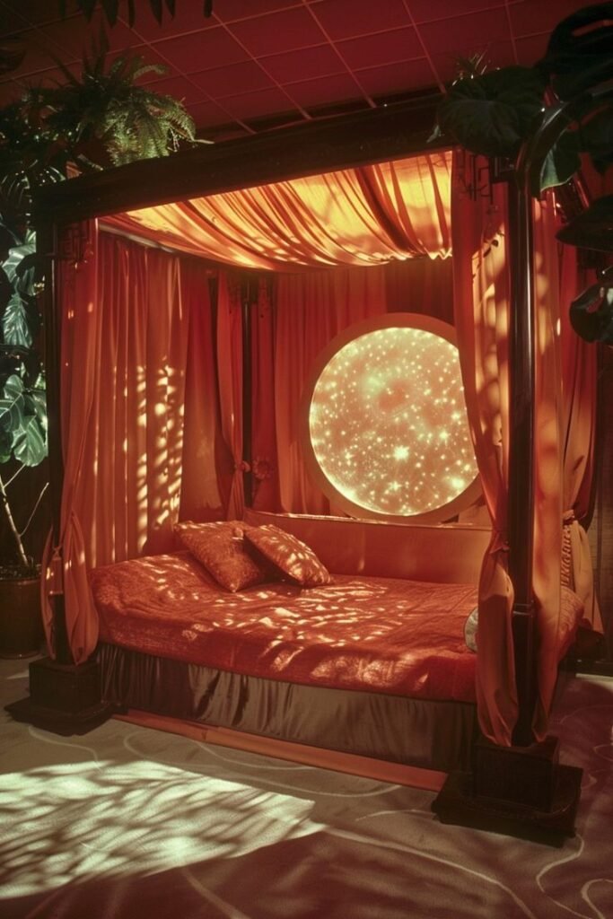 Add a canopy made of sheer cotton or lace. Drape it from the ceiling, a hoop, or a mounted rod. Let it fall softly around your bed to frame the space and create intimacy.