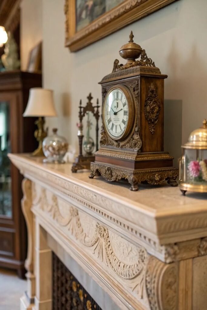 Use a vintage clock—either wall-mounted or as a table piece. You don’t need it to function perfectly; its shape and style are enough. It adds a touch of history that no modern piece could replicate.
