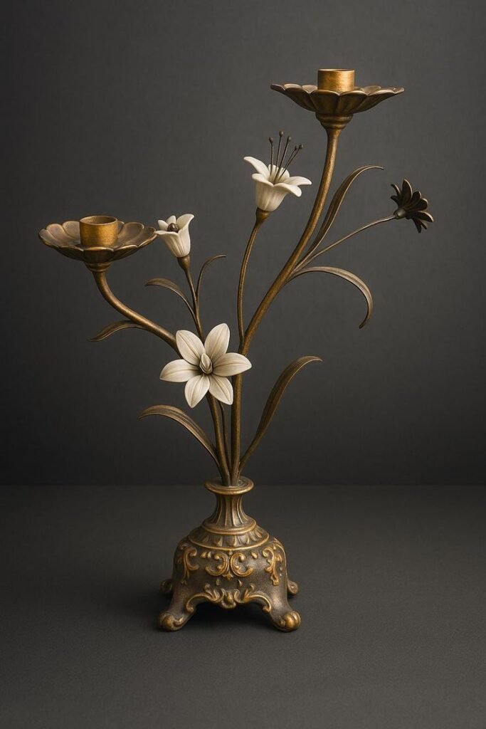 Use taper candles in brass or antique silver holders on your dresser or side tables. You can go with real candles or faux LED tapers for safety, but keep the warm flicker. The soft glow transforms your bedroom into a cozy retreat as soon as dusk rolls in.