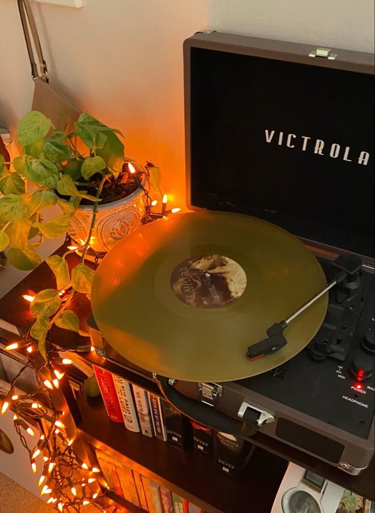 Add a vintage record player or a modern one with a retro look. Play classic jazz, old folk records, or lo-fi instrumental tracks while the rain falls outside your window.
