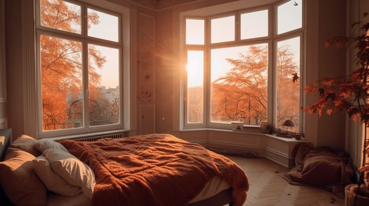 Try lace or crochet curtains in ivory, cream, or faded rose. They let the natural autumn light filter through with a dreamy, delicate glow. If you layer them over heavier drapes, you can adjust the warmth and privacy as needed.